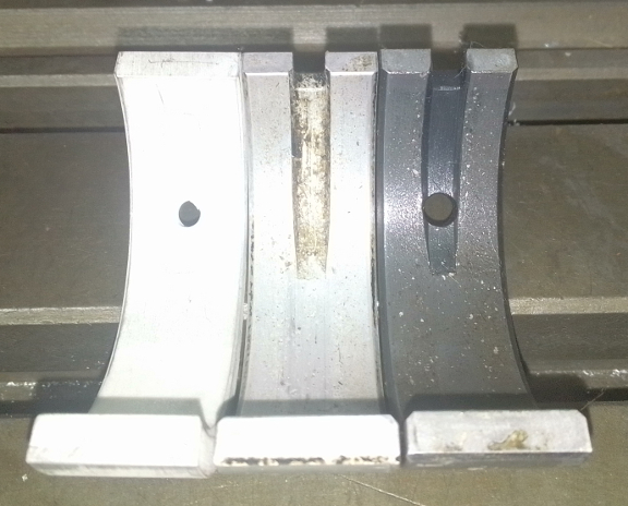 It should be recognized that this pinching has also "used up" the 0.002" of oil clearance that's required, so these bearings are more than that much wrong! The solution was to cut the bore a very, very tiny bit more, but this is a delicate operation indeed! Better not to have to do it in the first place. So, if you can avoid the German brand of main bearing, do!