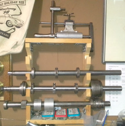 AT RIGHT: Here's our align-bore tooling. Our focus on it here is that we have two bars we like to leave set up, one at 60.5mm and one at 60.75mm (nominally), which are first and second oversize, tested and known reliable. Setting the cutters for a single cut is error prone as you only know you've "nailed it" when you use it and measure the results, and we're loathe to do this for a single case! ...Should we set up a bar or two, just for the German brand? -ugh!-