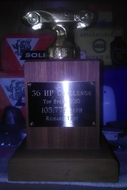 - Fastest speed in any 36hp Challenge event, for 2010 - we got a special trophy for our effort.