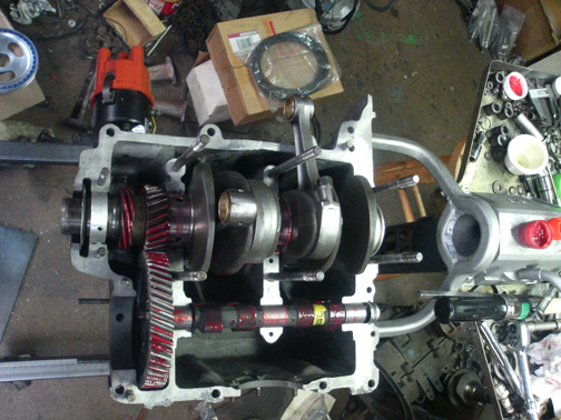 I know all this because I took it appart, obviously! I have to clean off the case sealant and that requires chemicals to disolve it, and I'm not up to that right now, so I'll deal with it in the AM. At that time I'll assemble the case (bare) and measure the cam bearing bores and all the camshafts I have on hand. Is it the case or the cam?! We can assume it's the new camshaft, but as wise people have learned, when it comes to assembling engines, never assume!