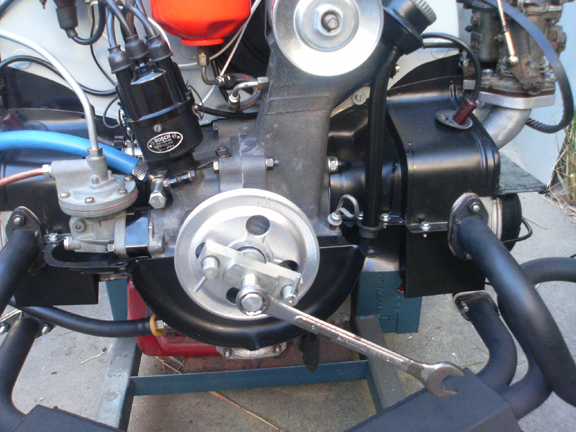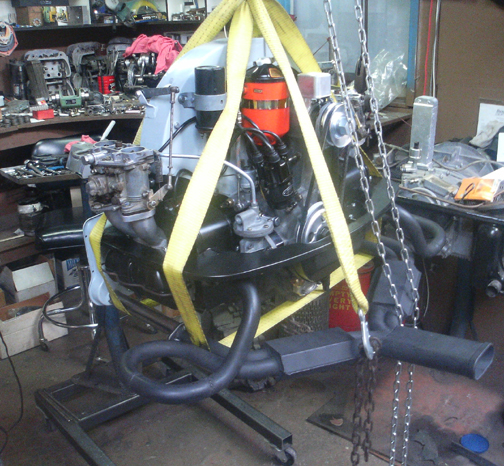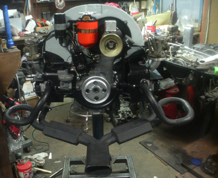 WATCH AND HEAR IT RUN! Click here. NOTE that the audio does _not_ do the engine justice - it cuts out when the real volume becomes earsplitting! (We guess that it exceeds 120 dB.) There is also a timing problem with some players so that the sound is offset in time from the actions in the video.