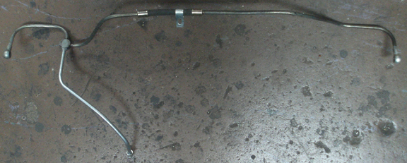 So, we have, of course, bought the available fuel line to the pump (around the left side of the engine) (which as of 2010 is no longer available either!) and have made our own fuel line from pump to carburetors.