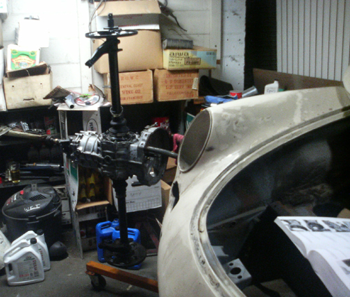 We replaced the stock split case transaxle with a tunnel type - remaining swing-axle, of course, so the Karmann Ghia's chassis was not modified.
