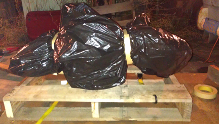 I then bagged the engine using two large plastic bags, taping the plastic down by looping masking tape around the cylinder areas.