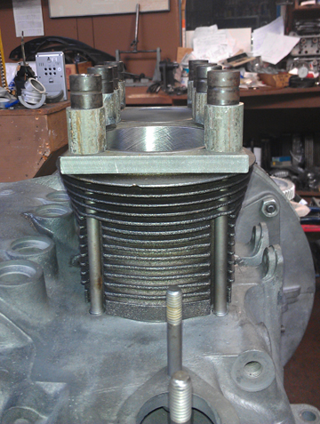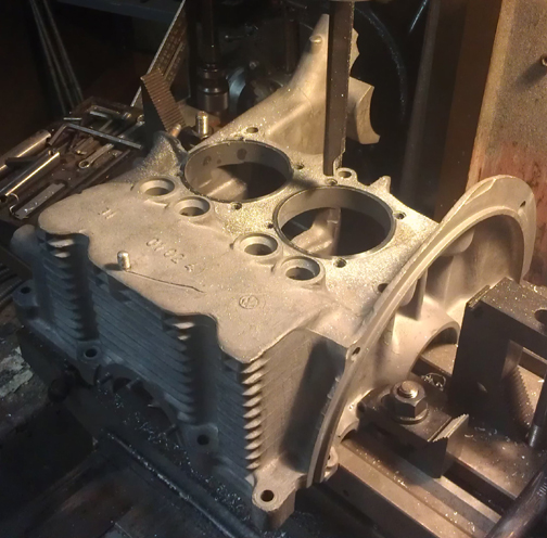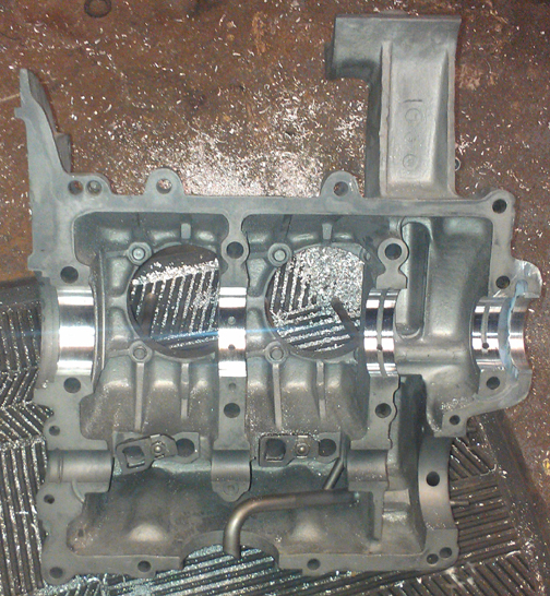 the pulley bore back to standard, it was time to bore the crankcase itself.