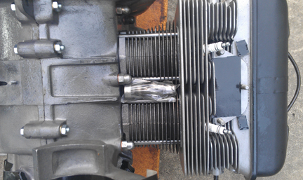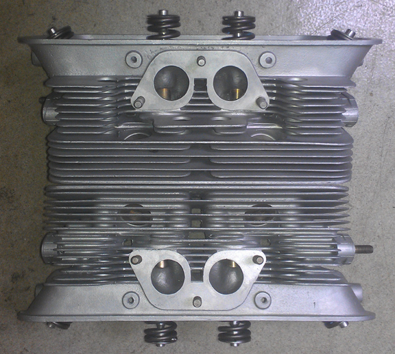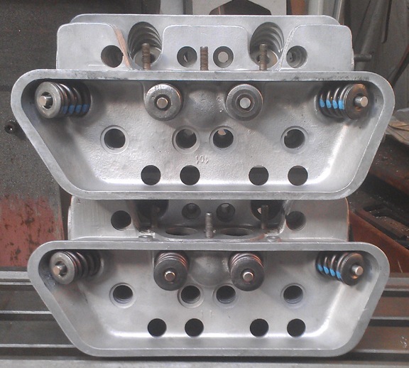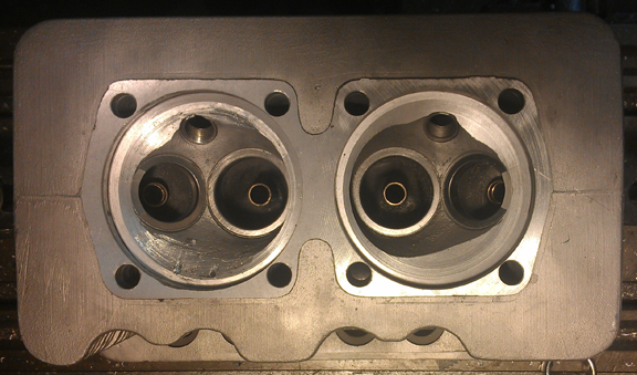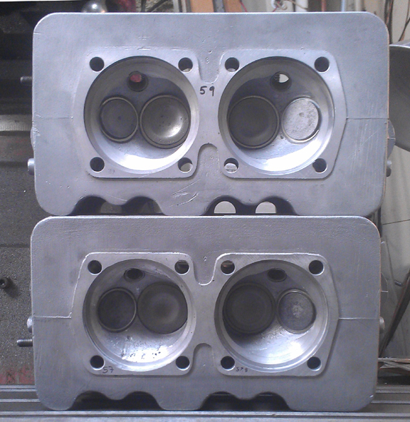 They're nice heads, but not perfect. The biggest flaw was that something got loose in one combustion chamber and beat up that combustion chamber a bit. This is probably why the engine was fitted with different replacement pistons as at least one of the originals didn't survive.