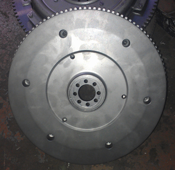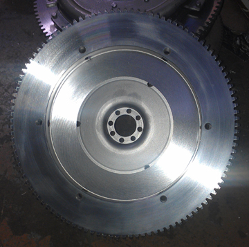 The flywheel seemed fine, has a lot of life left in it, and the starter teeth are in good condition, so I had a friend of mine who has the right machine tools resurface the clutch face and then rotationally balance it.