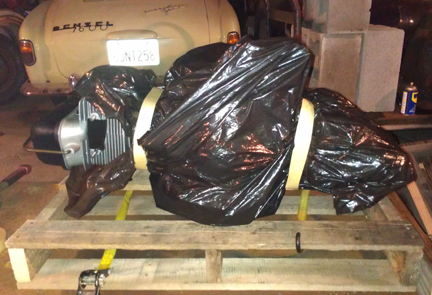 Well, off it goes to its new home. The new owner had me add a diaphram type, early throw-out style pressure plate - you'll see it in these images. And, I crated it for shipping, and off it has gone. In the following images, the crate construction is shown, which may be of some interest to folks.