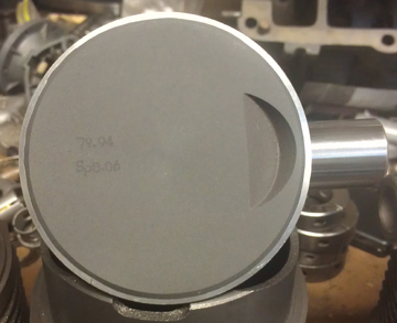 The next thing we do is something nobody else does (that we know of) in the engine building process, and that is to measure the height the piston crown comes above the plane of the top of the cylinder. I call this the CAC, or "Crown Above Cylinder." This value is important because, firstly, it can reveal deeper problems, and because it helps us get the compression ratio equal in all four cylinders.