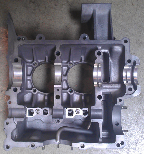 However, at right you can see the completed work on this engine's right half. Yes, new material was welded in and then machined to proper size...