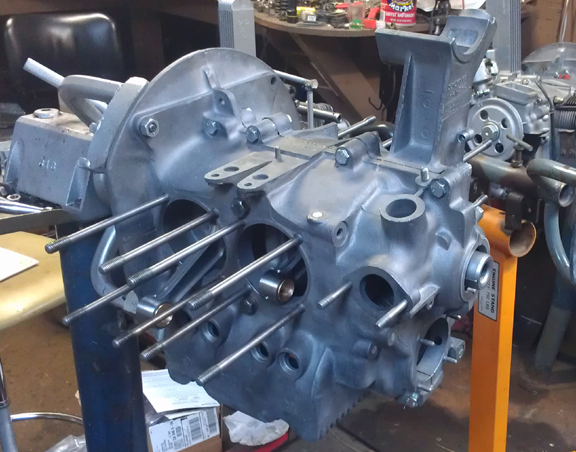 AssemblyAt right, the right case half, ready for assembly. The studs were removed during the case preparation phase for decking of the cylinders on this side.