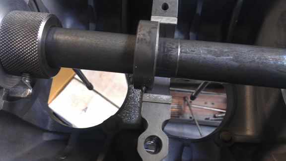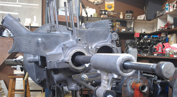 Rather than clutter this web page up with what has become for me a "routine process" (I've done about a half-dozen so far), I'll merely point you to this page I wrote to describe the process, and maybe help others who may encounter the same problem. Also on that web page you will find, near the bottom, an image or two showing the boring process in action - this is the same exact process used to "align-bore" the crankshaft bore in crankcases, just with the boring bar supports further outboard.