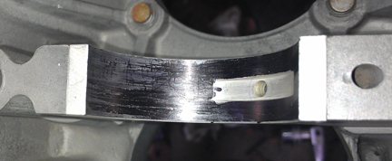 Note in the image at right the skuff mark just right of the left oiling hole - this is from pushing the bearing into the crankcase half to check fit.