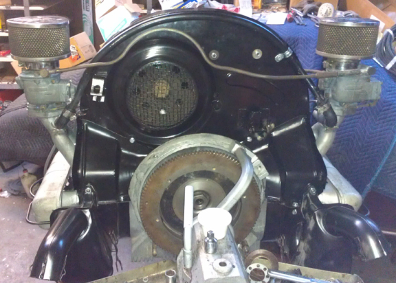 You can also see in this image that, as I realized only later, this wasn't quite the right fan shroud as it should not have the bracket (on left in image, just inboard of the carburetor) for the engine thermostat! Oops! I could have cut it off at this point, but I figured I'd leave that to the new owner, who may have other plans.
