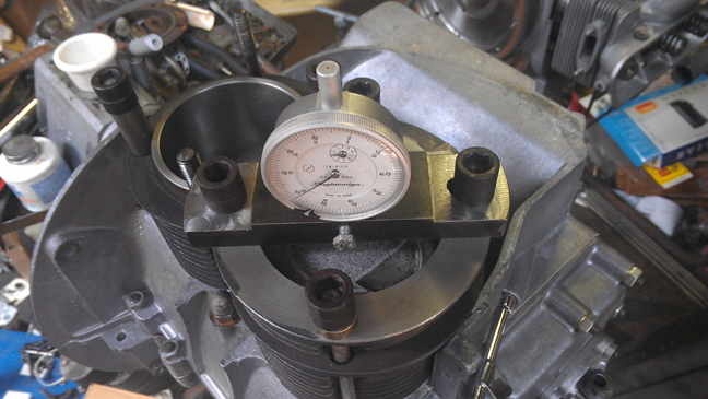 Here's where experience and superior tools come in! There are errors all over the place in the manufacturing process. Well, we like to catch what errors we can find and due to some perplexing issues we've found in the past, we've made our own tooling to help do a better job, faster. Here, we measure the height at which each individual piston protrudes from each cylinder. This helps us ensure a perfectly balanced engine and avoid any unseemly assembly errors!