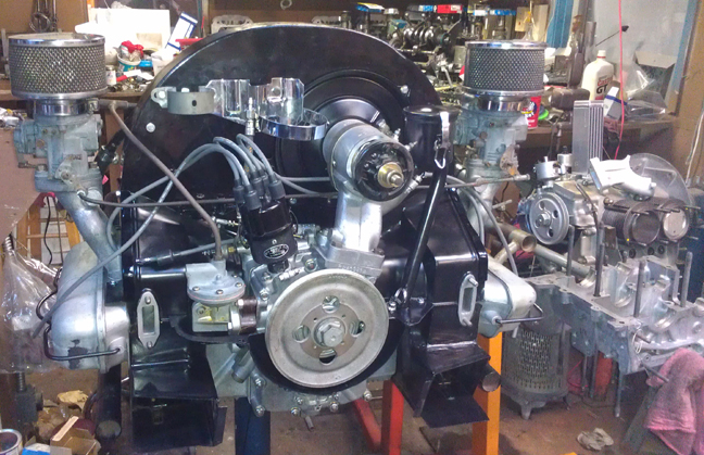 With no original Porsche to be returned to, the engine was then installed in a Beetle Cabriolet, whose hapless owner failed to adjust the clutch following installation, and within months, the now clutchless engine was sold and installed in a 1960 Karmann Ghia Cabriolet. The Ghia owner, being clueful, replaced the clutch but after only driving it "around the block a few times", decided the Ghia needed restoration, so the engine and Ghia sat in a private garage until I bought the Ghia circa 1990. I ran the engine at that time, measured the oil pressure at temp and listened to it; it passed the inspection. I removed the engine and sold the Ghia shortly thereafter and the engine has remained on my engine shelf until recently when the rebuild process began.