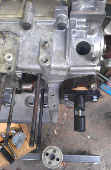 At this point the engine was sold, so it was dismounted from the engine stand and mounted up to the dynamometer, thus: