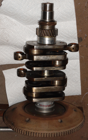 I then checked out the crankshaft. Aside from knowing some of the history, the spec. book does contain information on how to know if the crank is otherwise reuseable (you check the arc proscribed by the rods). Again, it's in fine shape.