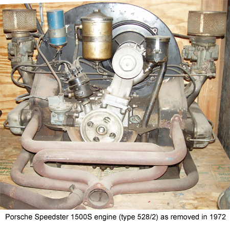 Engine (sold):Delivered in a 1955 Speedster in the San Francisco Bay Area, this engine was out of the vehicle in 1972 being serviced by a then-young Harry Pellow, having its Hirth roller-bearing crankshaft serviced by (we presume) Harry's friend Jim Wellington, when the Speedster was stolen.