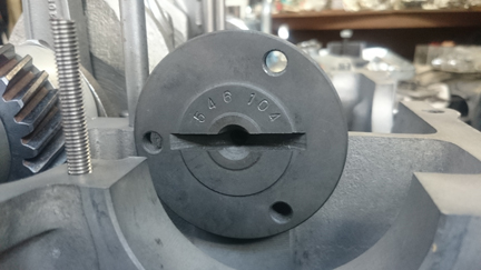 BELOW, LEFT & RIGHT: Here we see the end, with and without gear. The number on the end is Porsche's own number for this profile. It just happens that the gear that fits with proper lash happens to be a new gear. And, why not? Yes, new bolts, too.