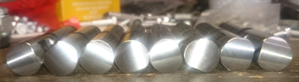 ABOVE LEFT & RIGHT: These lifters, refaced and polished. I hadn't noticed until I posted the image at right that the oil coating to protect them in storage should have been wiped off before taking the photo! Oh well...