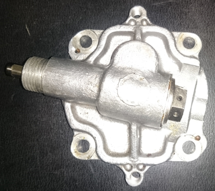 BELOW, LEFT & RIGHT: The oil pump cover, inside and out. The inside surface was faced off by laying a sheet of abrasive on a sheet of glass and gently "sanding." Then, of course, it was cleaned and a new seal applied.