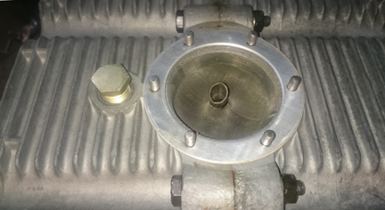 BELOW, LEFT & RIGHT: Here you can see that the caes bottom is in pretty good condition, too - not all corroded and pitted from sitting in moisture for decades! And, a new sump screen was fitted - seems only natural! Also, a sweet drain plug was mounted, too.