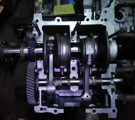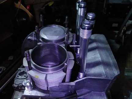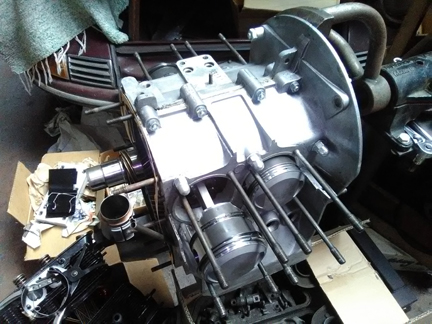 this point the engine is ready for its cylinder heads, and this work went very