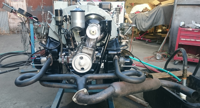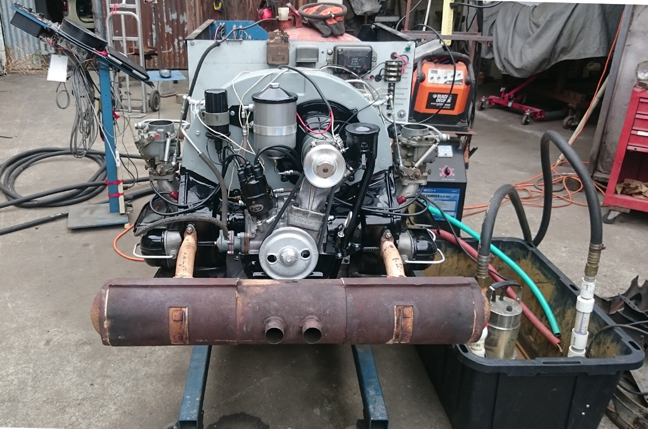 The first phase of running is before a load is put on the engine, when throttle adjustments and various checks are made, ignition timing set and so forth. The distributor was found to not have enough spring tension and so it refused to return to the idle position. It was then swapped with an 022 so the run-in process could proceed with out delay.
