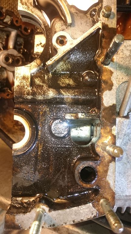 Further, the internals were filthy and there had been water let stand in the engine. The crankshaft was rusty, as were the oil pump gears and there was water damage in one head.