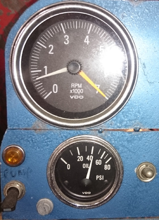 BELOW LEFT & RIGHT: The engine was finally finished off completely and then run again to check for exhaust leaks and a second check of the distributor following the new spring installation. The result was a nice happy idle at about 650 RPM. Note the great oil pressure - and this was after warm up, so the engine oil is fairly thin at this point.