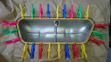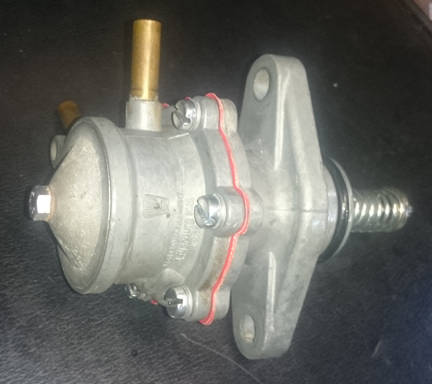 BELOW LEFT: Here, the fuel pump is done. The top provided had a bad bleed-back valve which prevents fuel from returning to the tank. That valve is not included in rebuild kids from Porsche and the best solution is to simply replace the top with the valve, and that was done here. All the parts were soda-blasted clean. The springs and diaphram are from the new kit and the top, top bolt ,and screws are all re-plated originals.