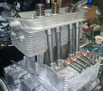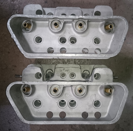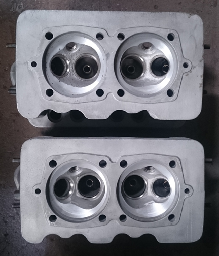 As is standard on ALL engines we build - no exceptions! - they all get new guides! On older engines with brass seats, those always get changed out to modern, unleaded-safe seats.... Of course, everything gets cleaned up. And, of course, when late type pistons and cylinders are mated to an earlier head, the heads are conically cut so there's no risk of the piston striking the head as would otherwise occur.