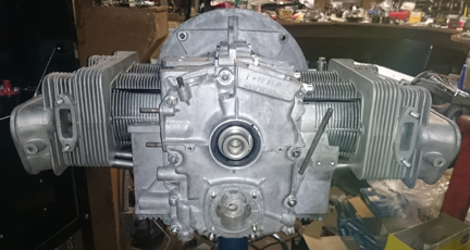 AT RIGHT: This engine nears completion. Remaining to be installed include the heating and exhaust system, the ignition system, the fuel pump, fuel line, and the carburetors.