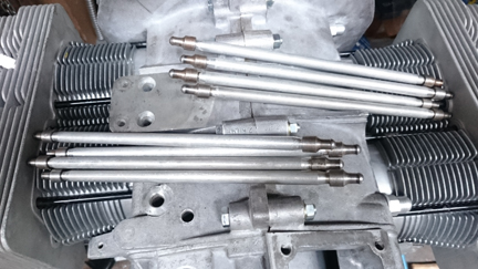 Now, with the pistons and cylinders sorted, it's time to mount the heads, pushrod tubes and lower cylinder air deflectors and torque them on. For this, per side, I staged the parts as you can see below.