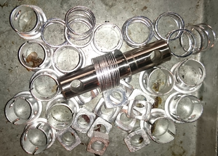 AT RIGHT: These bits are the springs, and the shims and seats that they push against that keep the rockers gently drifted to one side as the oscelate.