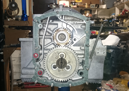 Then, the distributor drive gear is inserted and the distributor is mounted, resulting in this: