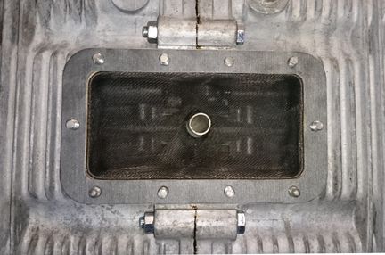 A demonstrably not well attended to area of concern is the breather tube where it exits down through the closing sheetmetal. Owners and / or engine builders famously ignore this completely - or, perhaps, they don't know what to do about it? Hmmm... In any event, the issue is that any mis-alignment of the breather tube through the sheet metal results in the tube being cut by years worth of vibration. Notice this engine's breather tube has already been cut through and a new bit of smaller diameter pipe has been added as a repair. And note that the spot where it was cut is precisely the spot where it transits out of the engine bay to the area below.