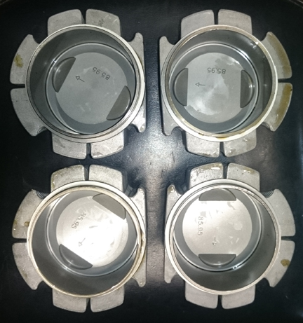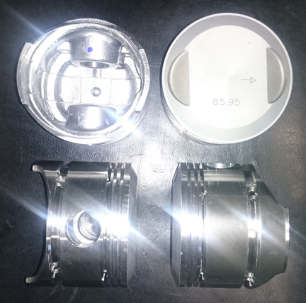 The customer selected to upgrade to modern biral, big-bore pistons and cylinders (86mm nominal bore) with nominally 9.5:1 compression ratio.