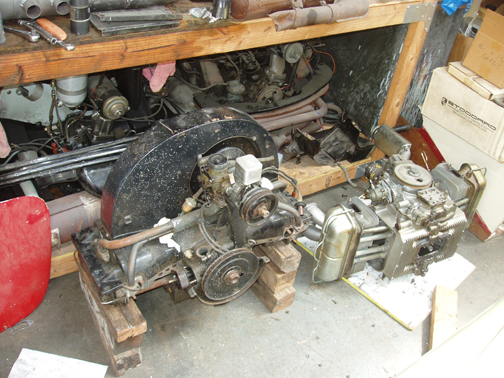 And yes, if you're sharp-eyed, that is a two-piece case Porsche "pre-A" engine, awaiting its turn on an engine stand! (There are only eight, but they're all in service!)
