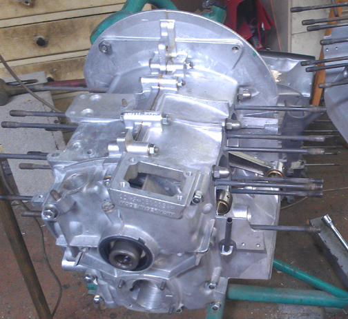 That goes rather quickly, the timing cover goes on, and here we have it as a "bottom end:"