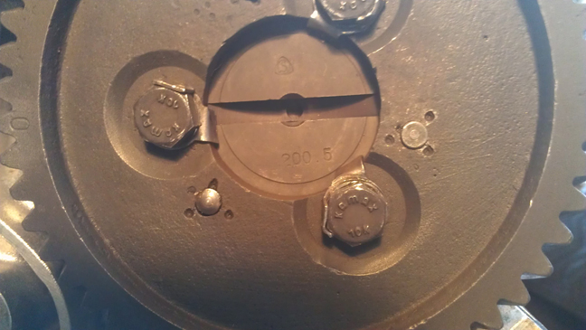 In the next image below, you can see the end of the timing gear and both the oil pump drive slot and the identification marks for the cam. Note the "200.5". And yes, it was made by Sachs.