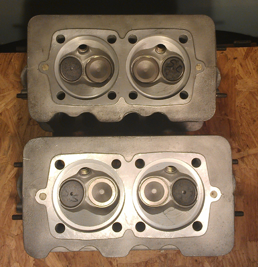 Instead, I just happened to have a beautiful set of heads ready to go and chose them. Firstly, these heads have never been cracked as 912 heads (and C / SC heads) are prone to cracking between the spark plug bore, intake seat bore, or exhaust seat bore - or any combination thereof - when overheated. Secondly, these heads have have new guides, and refaced valve seats. Thirdly, these are really the same heads, and NOT the awful, even more crack prone (without overheating!) air-injection 912 heads - or the even later ones where the casting has fin-loss at the place where the air injection formerly would have been. Finally, these heads have been carefully gone through to repair or replace any damaged studs or threaded holes, as necessary.