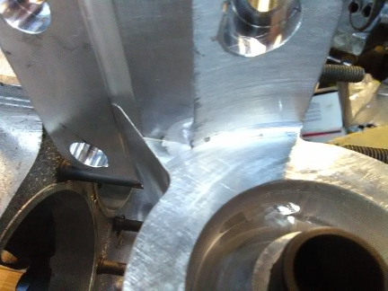AT RIGHT: Here we see the adapter modified and then welded. Because the weld is hard to see in the image, we've pointed it out with the red arrow. NOW we have a solution that works as intended.