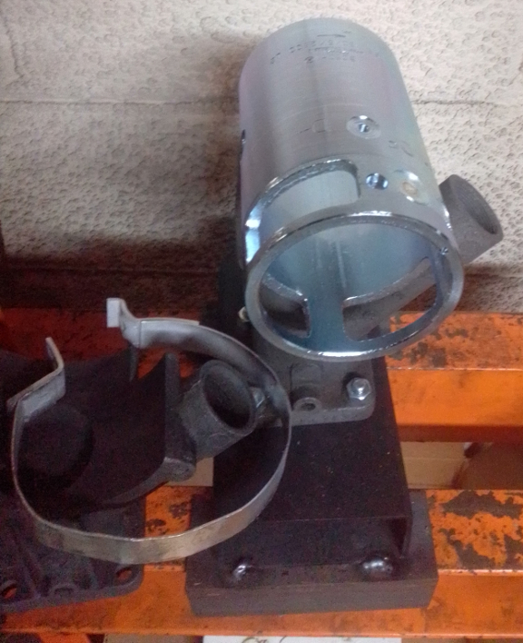 We welded bolts into holes of the correct spacing, and can just swap the stand to change diameters. The VW straps, one 6v, one 12v, retain the unit - the generators are the same diameters, but the VW straps were designed for the VW stands. And, they're cheaper.