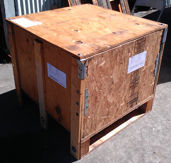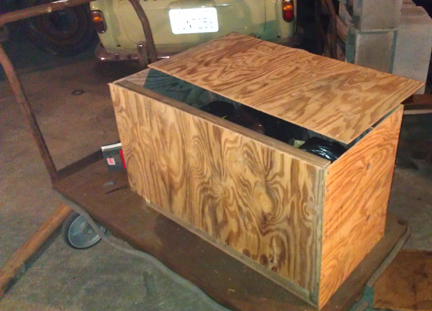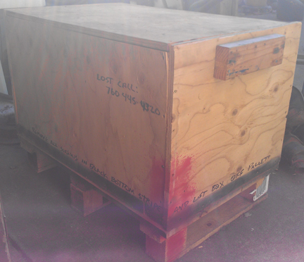AT RIGHT: Another of our crates, this one not to be returned to us, though it's of basically the same construction. Our customer paid us to make this one for him to keep..